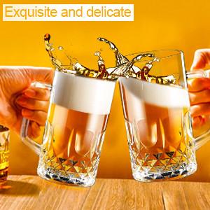 2 Pack Heavy Large Beer Glasses with Handle - 20 Ounce Glass Steins, Classic Beer Mug glasses Set
